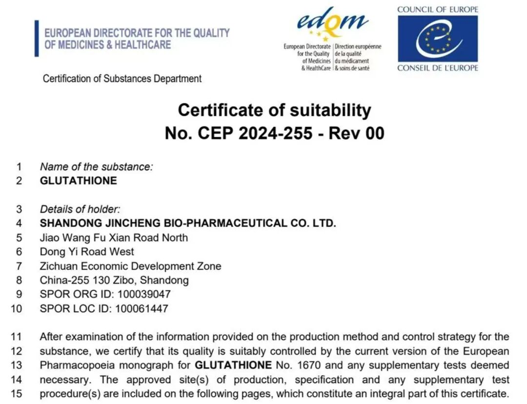 金城生物谷胱甘肽原料藥獲歐洲CEP認(rèn)證發(fā)表時(shí)間:2025-11-20