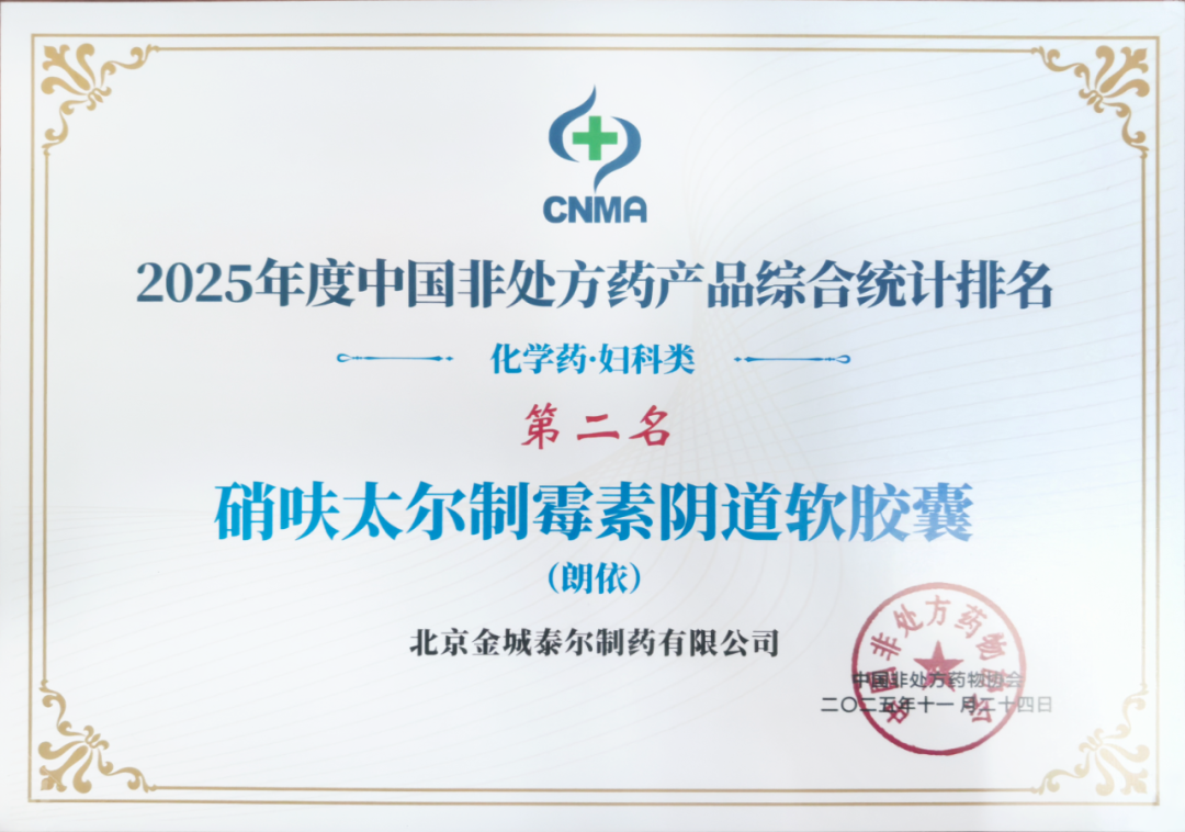 ? ? ??日前,在北京召開(kāi)的2025年度中國(guó)OTC品牌大會(huì)上,中國(guó)非處方藥物協(xié)會(huì)發(fā)布2025年度中國(guó)非處方藥企業(yè)及產(chǎn)品品牌統(tǒng)計(jì)調(diào)研結(jié)果,金城醫(yī)藥集團(tuán)旗下子公司北京金城泰爾制藥有限公司核心產(chǎn)品朗依?硝呋太爾…