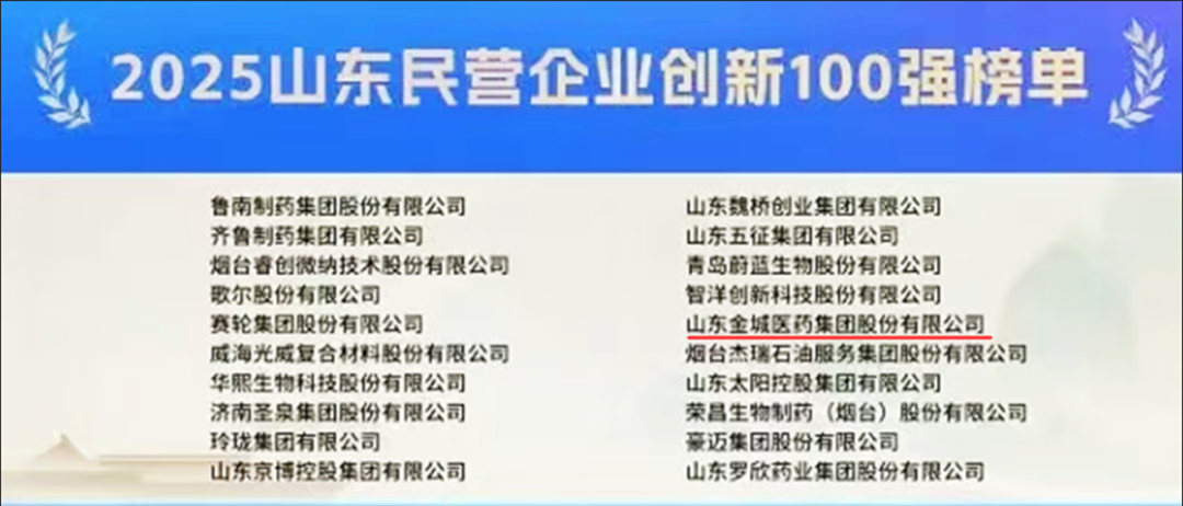 金城醫(yī)藥集團(tuán)獲2025山東民營企業(yè)創(chuàng)新100強(qiáng)榮譽(yù)