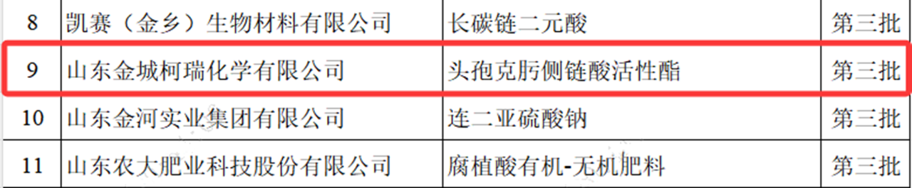 ? ? ??日前,工業(yè)和信息化部發(fā)布了第九批制造業(yè)單項(xiàng)冠軍企業(yè)和復(fù)核通過(guò)第三批、第六批制造業(yè)單項(xiàng)冠軍企業(yè)名單,金城醫(yī)藥集團(tuán)子公司山東金城生物藥業(yè)有限公司(簡(jiǎn)稱“金城生物”)被認(rèn)定為第九批制造業(yè)單項(xiàng)冠軍企業(yè),子公司山東金城柯瑞化學(xué)有限公司通過(guò)第三批制造業(yè)單項(xiàng)冠軍企業(yè)復(fù)核。截至目前,金城醫(yī)藥已獲批3個(gè)國(guó)家級(jí)制造業(yè)單項(xiàng)冠軍企業(yè)和2個(gè)省級(jí)制造業(yè)單項(xiàng)冠軍企業(yè)。