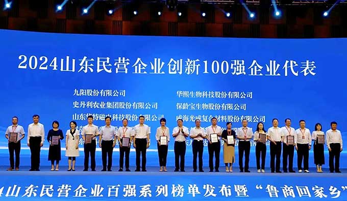 7月26日,2024年山東民營企業(yè)百強系列榜單發(fā)布暨“魯商回家鄉(xiāng)”活動在濱州市博興縣舉行。會上,發(fā)布了“2024年山東民企200強”“創(chuàng)新100強”“吸納就業(yè)100強”等榜單。金城醫(yī)藥集團繼2022年、2023年獲評后再度榮獲山東民營企業(yè)創(chuàng)新100強榮譽。
